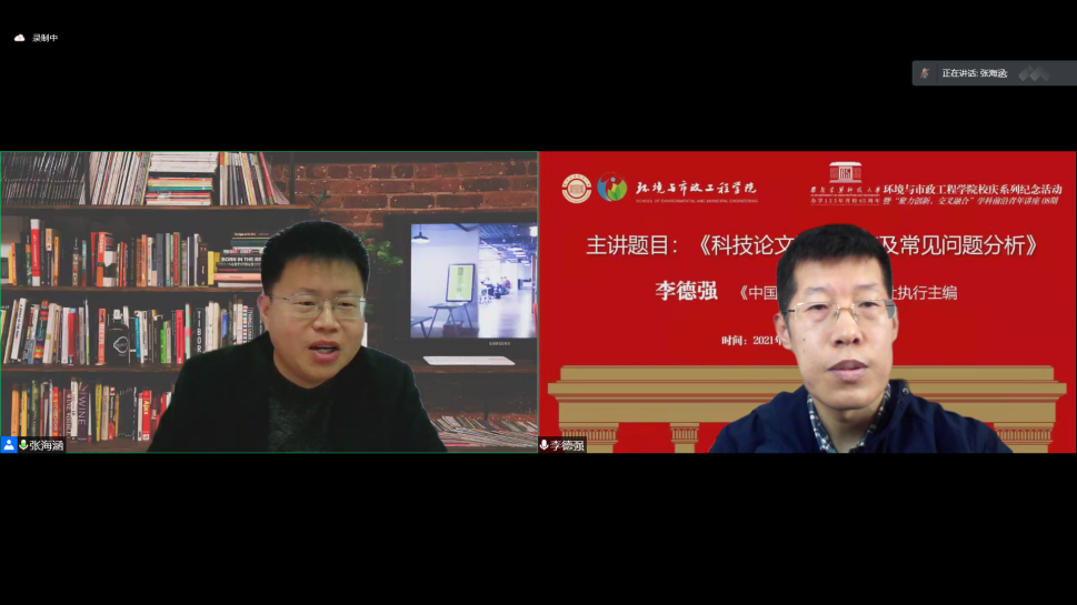 为秉承“学术立院,学术强院”理念,进一步提高研究生科技成果质量,12月11日上午9点,裙底偷拍 特邀《中国给水排水》杂志社执行主编李德强担任主讲嘉宾,组织开展了第八期学科前沿青年讲座,以实际行动向裙底偷拍 办学125年并校65周年校庆献礼。受疫情影响,讲座采用线上方式进行,校内师生300余人与会交流。讲座由裙底偷拍 副院长张海涵教授主持。图1.副院长张海涵主持讲座会上,副院长张海涵首先对主讲嘉宾李德强老师的到来表示热...