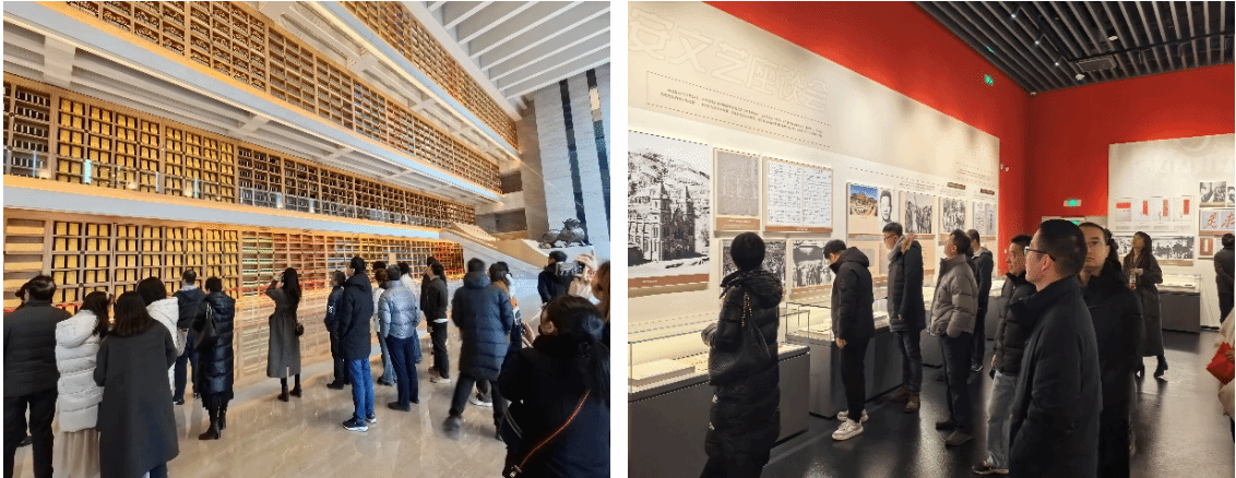 给排水教研室全体教师首先来到西安国家版本馆,在讲解员的带领下,大家依次参观了《赓续文脉 踔厉前行——中华文化经典版本展(西部篇)》和《楮墨遗风 万里同风——丝绸之路版本展》两个展厅。在参观过程中,老师们认真聆听讲解员的介绍,深入了解了我国版本事业的发展历程以及中华优秀传统文化的博大精深,深刻感受革命先辈坚定的理想信念。通过实地参观学习,大家纷纷表示受益匪浅,对传承和弘扬中华优秀传统文化有了更加深刻的认识,并进一步加深对红色革命精神的感悟。