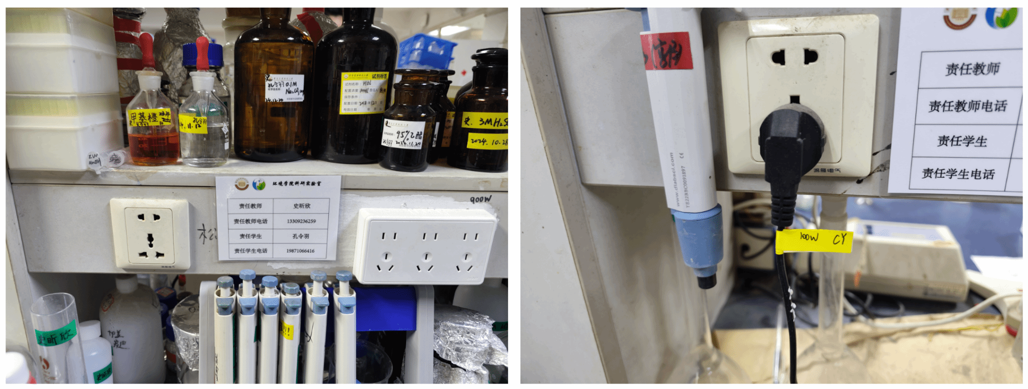 全面整改,提升实验室安全水平。根据问题清单,各实验室负责人带领实验室人员开展全面整改,对标对表,逐个销号。经两次督导检查,各实验室已基本完成整改,实验室安全与环境卫生质量显著提升。同时,针对联合检查发现的其他隐患问题,学院统一制作更新实验室信息牌,梳理用电负载,增设用电信息标识。还设立了研究生党员实验室安全文明示范区,充分发挥学生党员示范带头作用。