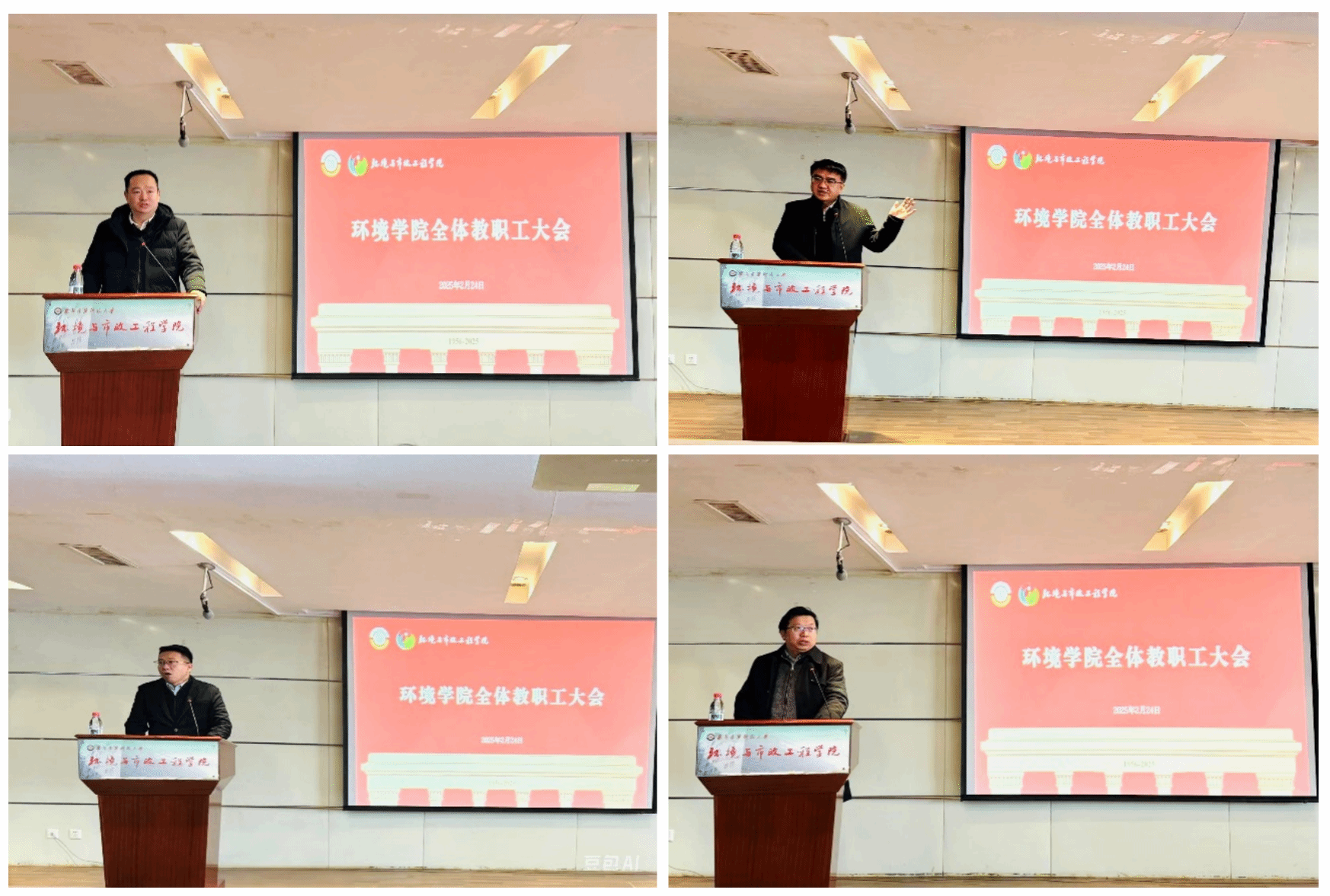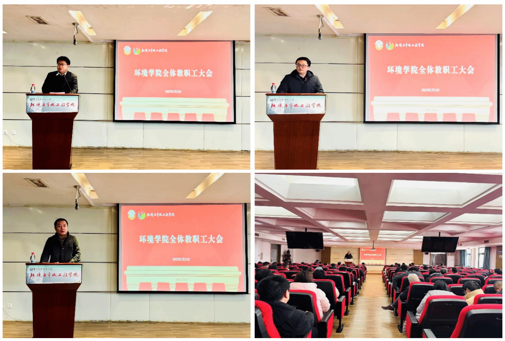 在环工楼716报告厅召开全体教职工大会,会议传达学习了校党委书记朱晓渭、校长赵祥模在学校2025年党委全委(扩大)会议上的讲话精神,安排部署2025年工作。会上,学院领导班子成员对分管工作计划进行了汇报,院长卢金锁回顾总结了寒假工作,并对2025年学院重点工作进行了安排,学院全体教职工参加会议。会议由学院党委书记曹宏伟主持。
