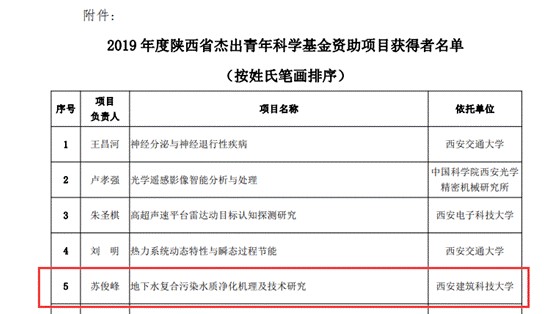 苏俊峰教授获得2019年度陕西省杰出青年科学基金资助。