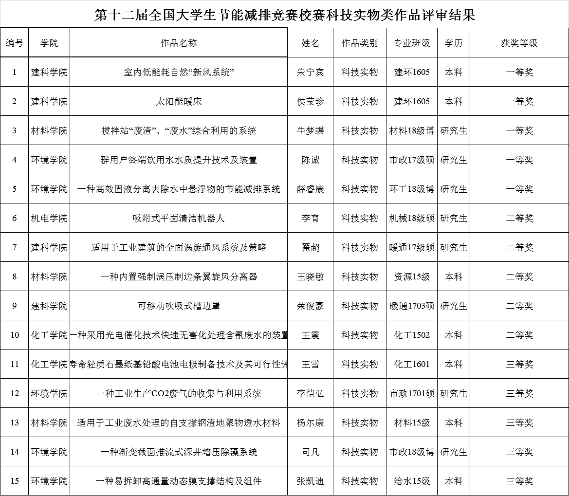 在第十二届全国大学生节能减排社会实践与科技竞赛中取得优异成绩。