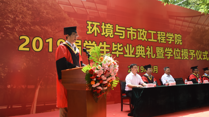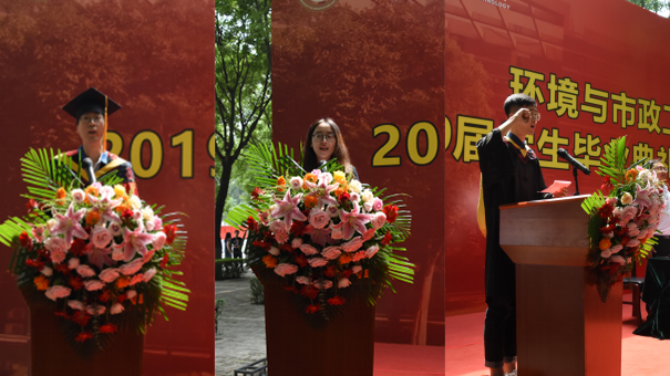 永远是同学们温暖的家,是同学们永恒的精神家园。研究生代表市政1601史悦同学、本科生代表环工1502何云飞同学随后也进行了发言。他们各自总结了自己这些年的学习生活以及对母校、学院、老师的感激之情,这不仅仅是他们的学习生活,更象征了每一位毕业生的缩影。史悦同学表示,我们新奇过,懒惰过,也奋斗过。时间不会停驻,我们要更努力的向前,离开温暖和美好,独自面对未知和挑战。有榜样在前,有母校在身后,我们无畏无惧。