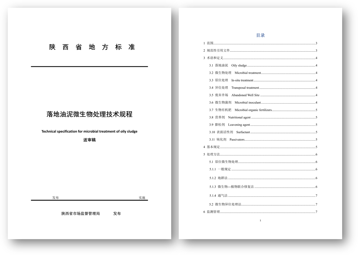 协同中国石油天然气股份有限公司长庆油田分公司、陕西省环境科学研究院、西安交通大学,完成了《落地油泥微生物处理技术规程》(简称《规程》)的编制,该标准的发布可有力保障我省油气田开发企业的发展需求与国家地方环保事业。