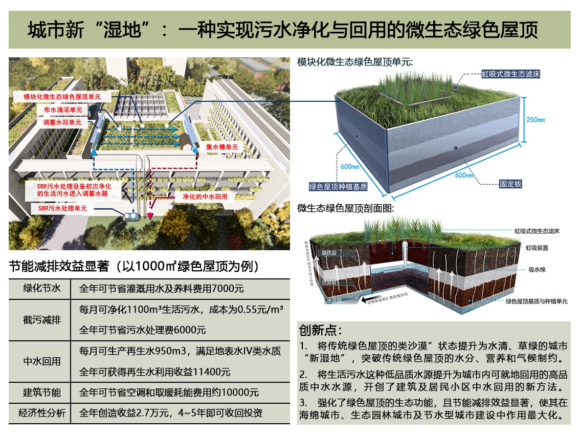 1.一等奖作品:城市新“湿地”:一种实现污水净化与回用的微生态绿色屋顶