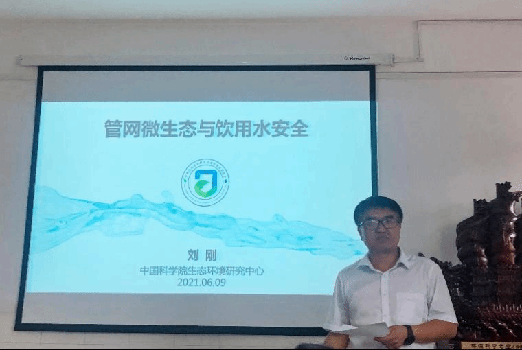 刘刚研究员的报告题目为《管网微生态与饮用水安全》。他首先介绍了微生物学的发展史,通过讲解巴斯德曲颈实验及马丁内斯烟草花叶病毒的发现过程,呼吁同学们在科学研究时应具备创新精神与发散思维。接着介绍了饮用水在输配过程中水质变化的研究进展,从主控机制、调控原理、管控策略三个方面介绍其在管网水质控制的最新研究成果,提出了“户-网-厂”溯源联动管控理念与微生物在线检测分析技术相结合的水质安全管控模式。他还强调了饮用水安全的重要性,并介绍了全球目前先进的饮用水处理技术。最后,刘老师通过其科研经历鼓励广大研究生树立远大理想,热爱自己的专业,并不断为之努力奋斗。