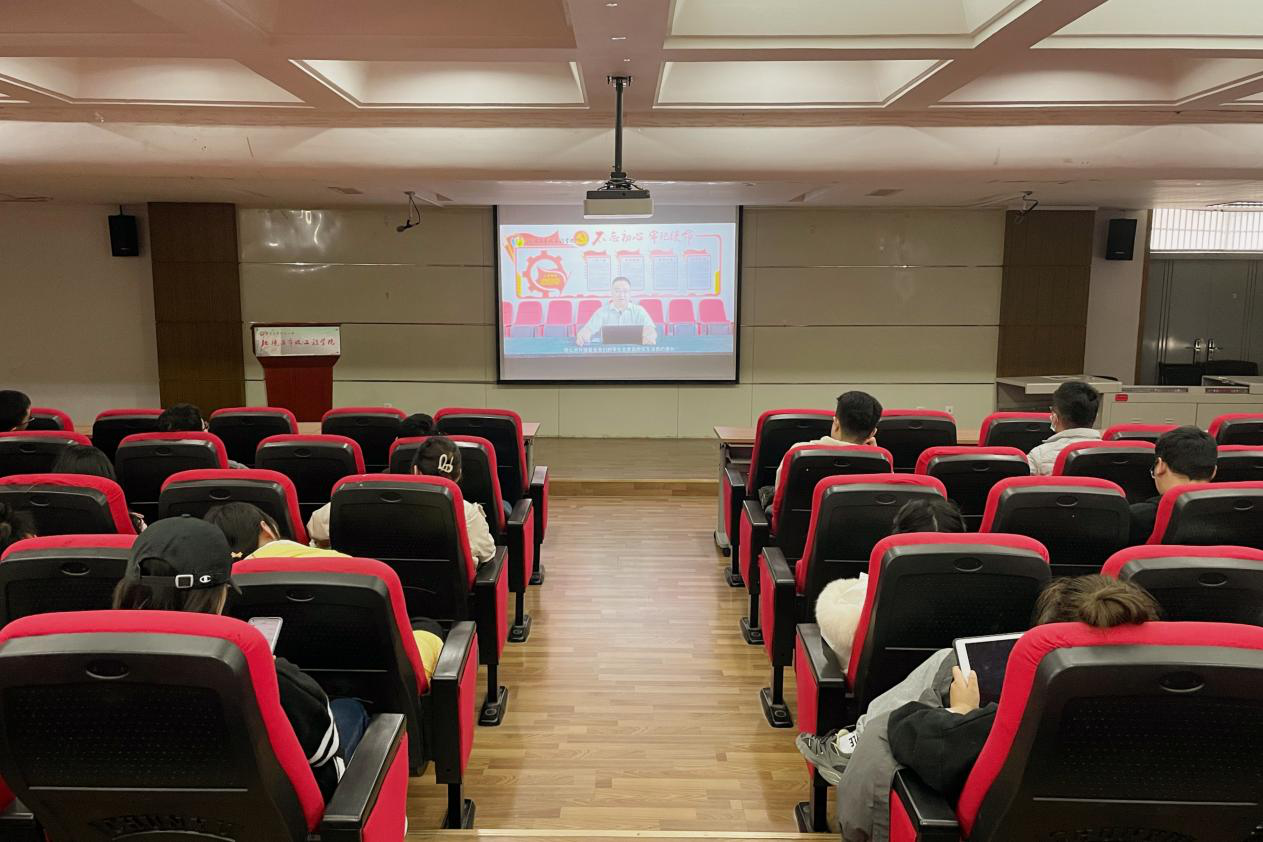 党委书记王劲松老师“学懂悟透习近平新时代中国特色社会主义思想”的党课视频,视频中王劲松书记紧紧围绕习近平新时代中国特色社会主义思想的核心要义和理论品格,以“八个明确”和“十四个坚持”为核心内容和主要依据,对习近平新时代中国特色社会主义思想的基本精神、基本内容、基本要求作了全面系统的解读和阐述。同学们认真倾听,对习近平新时代中国特色社会主义思想有了更加深入的认识和理解。
