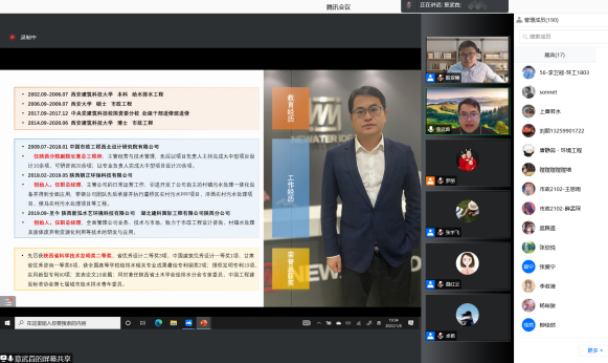 此外,为了更好的坚定学生抗击疫情的自信心,旨在帮助同学们在疫情管控期间克服困难,刻苦学习,了解就业现状和社会需求,学院邀请到环科专业优秀毕业生杨鹏举(中建三局第三建设工程有限责任公司副总经理、武汉抗疫火神山雷神山建设所属工区机电现场总指挥)、市政工程专业优秀毕业生章武首(陕西新泓水艺环境科技有限公司总经理、湖北建科国际工程有限公司陕西分公司总经理)分别从疫情防控、求学之路、职业生涯规划以及社会经验等方面对学生进行指导和帮助。杨鹏举讲述了自己参加武汉抗疫、建设“两山”医院的难忘经历。他用一个个鲜活的防疫事迹生动还原了武汉抗击疫情的真实场景,鞭策着广大青年学生要时刻谨记生命的意义在于奋斗,人生的价值在于奉献。章武首在演讲中,和同学们分享了他学习、工作和创业的亲身经历和体会,阐述了学习贵在“自律”,就业强调“平台”、“态度”、“协作”和“领悟”,创业的核心在于“创新”、“时机”和把握“新时代”特征。两位导师从自身经历、社会经验等方面帮助学生拓宽视野,为其在人生路上点亮一盏盏指路的明灯,指引他们向着心中的梦想,奋力前行!