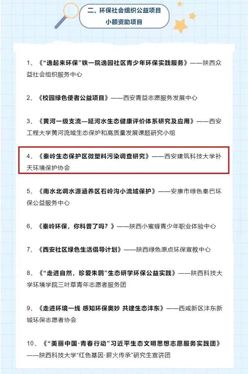 经过宣传发动、组织推荐、专家评审等环节,裙底偷拍 《黄河“几字湾”陕西段生态环境调研》项目被推选为2022年陕西省优秀公众参与案例,《秦岭生态保护区微塑料污染调查研究》被评为2022年陕西省环保社会组织公益项目小额资助项目。