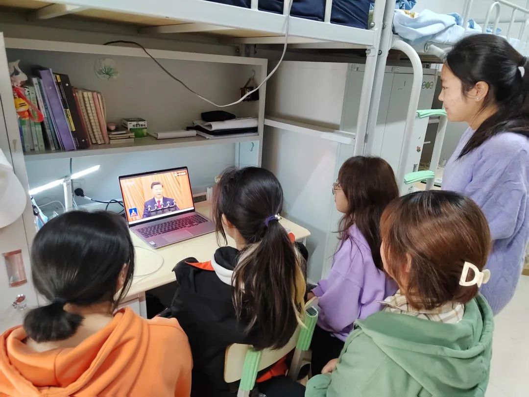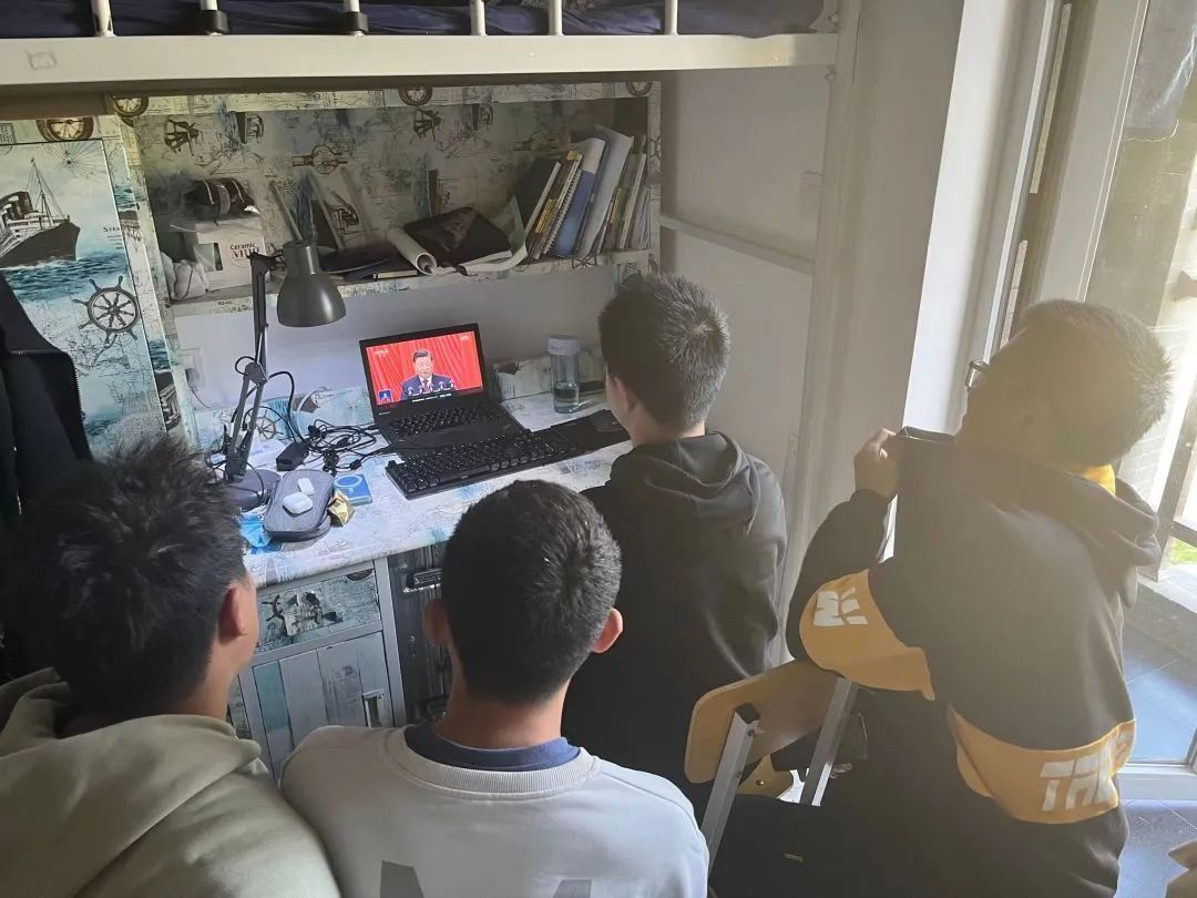 遥想建党之艰辛,千回百转;追忆改革之骁勇,热血沸腾;展望经济之蓬勃,意气风发;细数人物之风流,还看今朝。习近平总书记所作的大会报告凝聚人心、催人奋进,同学们纷纷表示,在迈上全面建设社会主义现代化国家新征程、向第二个百年奋斗目标进军的关键时刻,要继续坚定不移跟党走,认真学习贯彻落实好党的二十大精神。以良好的精神状态和优异的学习成绩,为新时代中国特色社会主义建设贡献自己的一份力量。