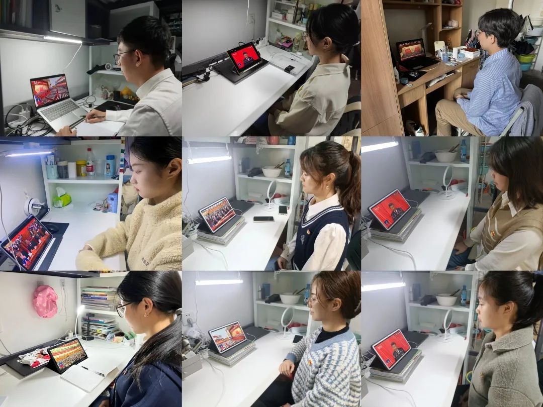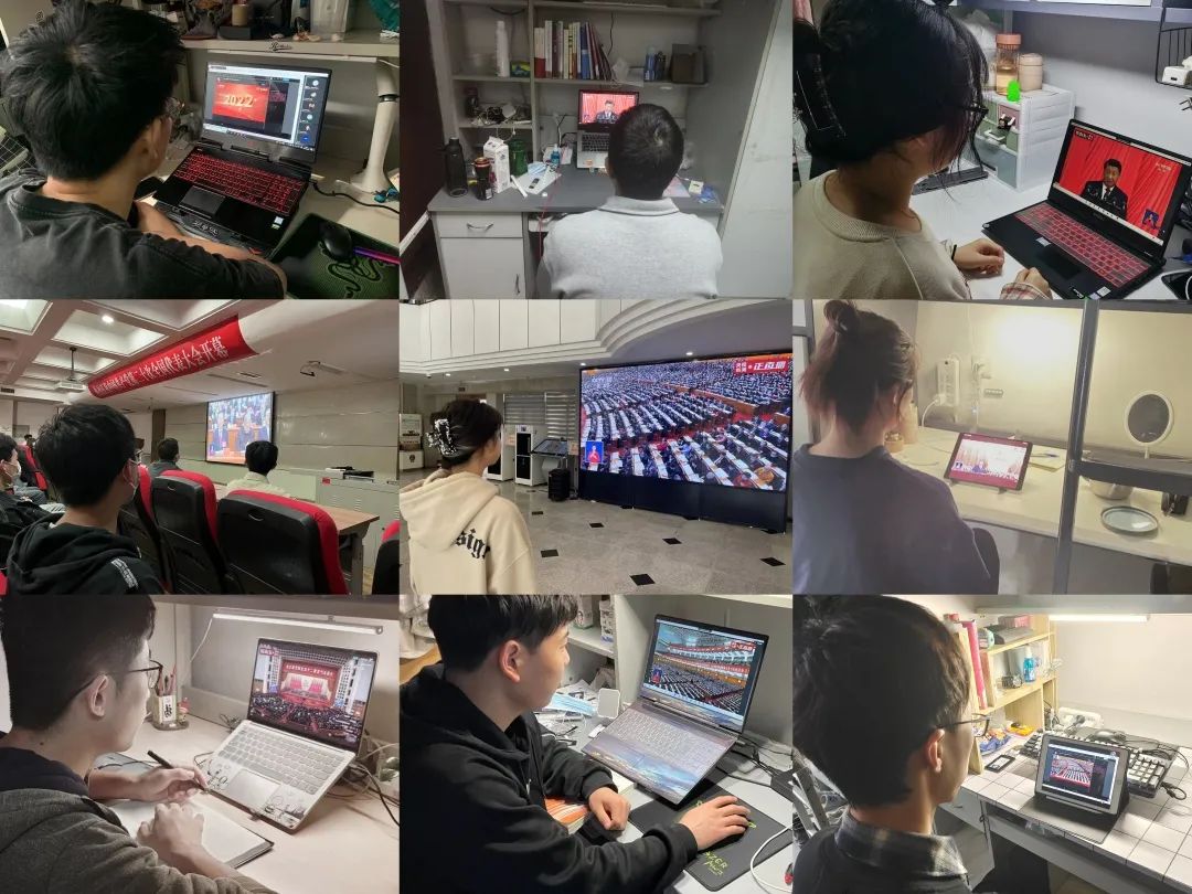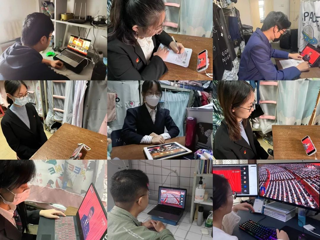 学工干部在环工楼313会议室集中观看开幕会直播,各党支部、团支部、班级和团委学生会同学通过电视、网络、广播等形式,分别在会议室、教室、实验室、宿舍等地收看直播。全院广大师生们怀着激动的心情,以昂扬的精神状态、饱满的学习热情认真聆听习近平总书记的重要讲话,深入讨论党的二十大报告。
