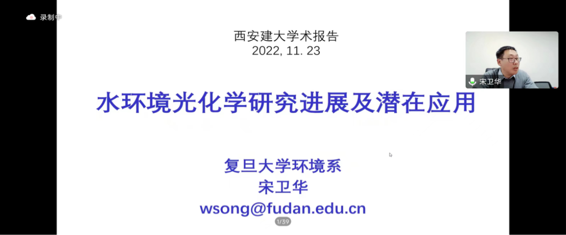 宋卫华教授以《水环境光化学研究进展及潜在应用》为题,围绕环境光化学相关知识展开介绍,并指出环境光化学是环境过程的重要组成部分,目前溶解性有机质参与的水体环境光化学过程具有反应机制复杂、活性中间体繁多和浓度低等特点,导致我们对其机制理解并不完善。本讲座从自由基的生成和转化机理、与污染物的反应机理等方面进行详细阐述,具体讲解了水环境光化学转化过程中生成的多种自由基的定性和定量分析方法的建立、其产生机理和动力学过程,进一步探讨了氧化剂强化光化学转化的机理、优势及其潜在的应用前景。