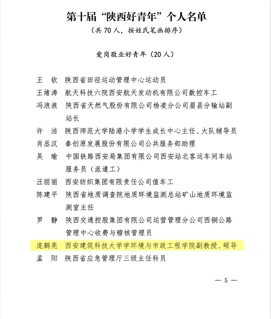 副教授、硕导庞鹤亮荣获“爱岗敬业好青年”个人荣誉。