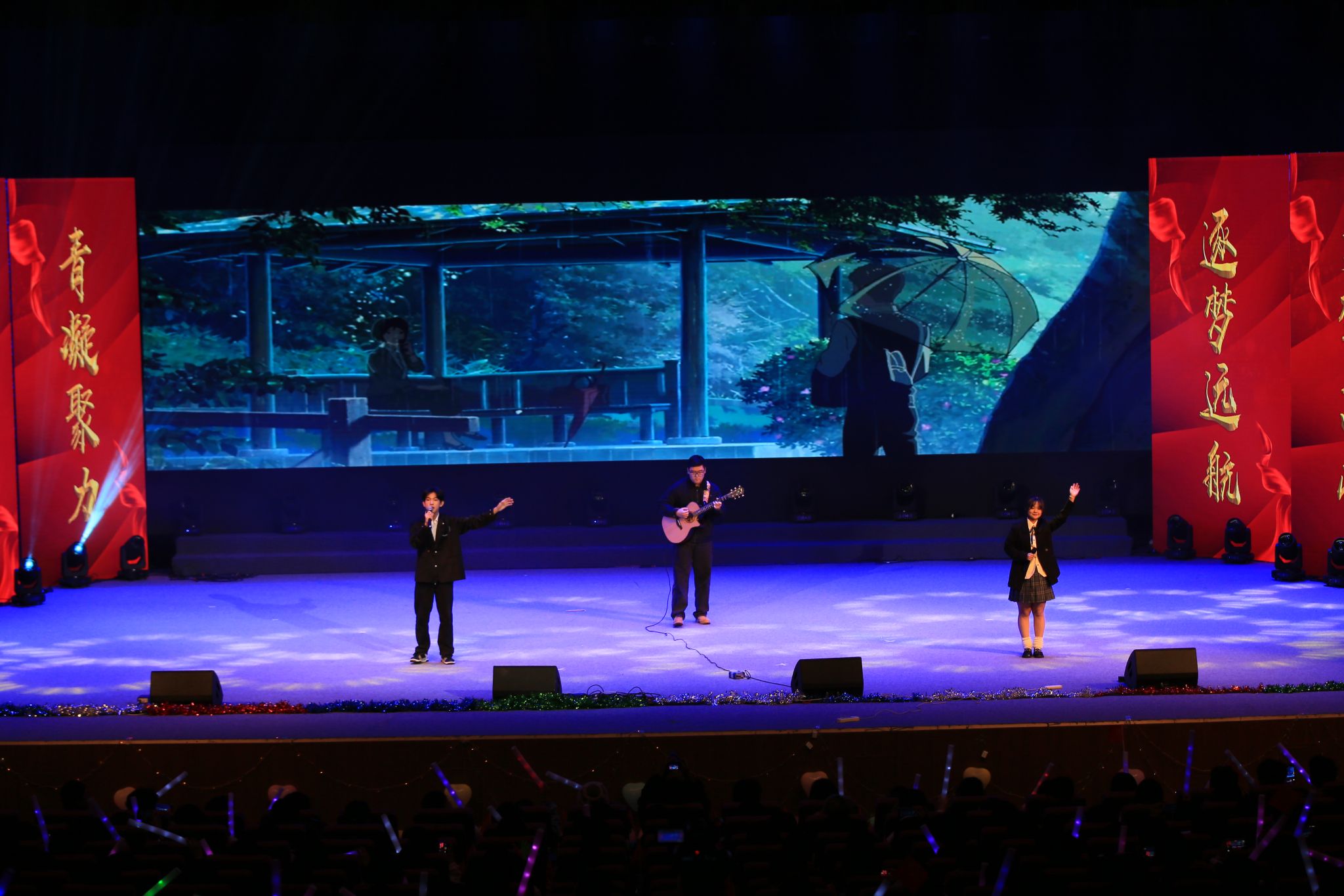 晚会在激动人心的开场视频中正式开始,视频回顾了学院一年来的主要学生工作和所获得的各项荣誉。随着一声声倒计时,舞蹈《再唱山歌给党听》盛大开场。慷慨激昂的歌声、优美婀娜的舞蹈,一步一动间,描绘了党的102年风雨兼程;一颦一笑间,表达了对党的衷心祝福。波澜壮阔已百年,开天辟地换人间。当年嘉兴南湖上的小小红船,早已成为当今国际的时代巨轮,将继续载着我们乘风破浪、勇立潮头。
