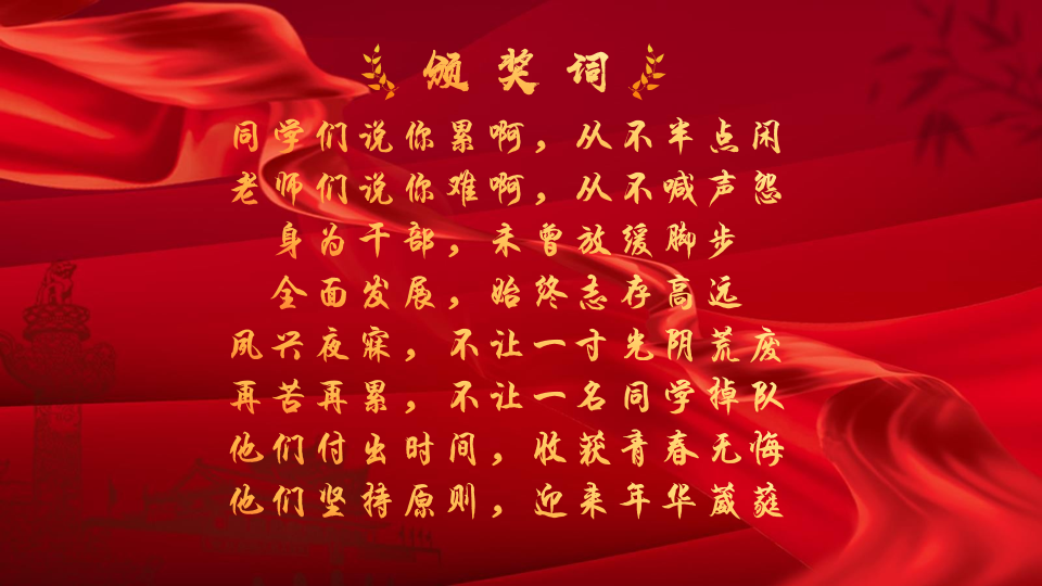 本次颁奖晚会持续两个小时,现场气氛热烈,掌声雷动。此次晚会是学院人才培养、入学教育的重要内容,进一步激发了同学们爱党爱国爱校的热情,传达了积极向上、勇于拼搏、敢于奋斗的精神。同时,这也是对受表彰同学学习工作的肯定,是对广大校友爱校荣校、重教助学、无私奉献的高尚精神的高度赞美与发扬光大,更是对在场每个人不忘初心、砥砺前行、再续新篇的激励。希望广大环境青年秉承“爱我环工,勇攀高峰”的拼搏奋斗精神,在未来的道路上砥砺奋进、勇敢前行,为国家、为人民、为学校学院的发展贡献自己的青春力量!