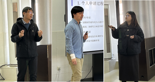给排水教研室杨垒副教授、环工教研室卓杨博士后和王雪萌副教授依次做了主题为“道阻且长,行则将至—基金申请的教训与经验浅谈”、“思维转变与体会”、“青基项目申请的心得与体会”的交流分享。