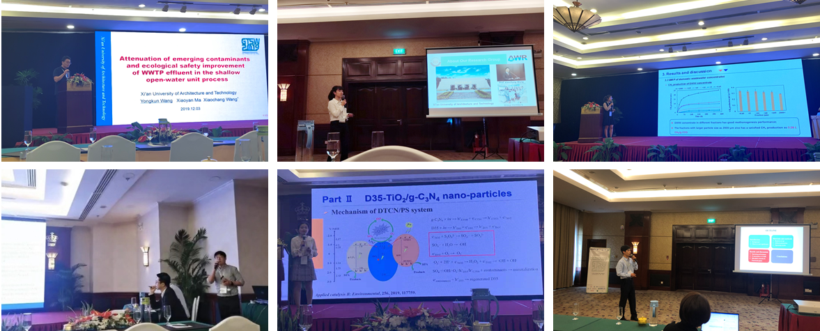 博士生王永坤,黄悦,杨媛,许路,白雪和雷振分别在污水水处理与回用、废水资源回收、水资源管理与供水、纳米技术在水处理中的应用四个分会场分别发表口头报告。