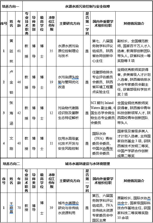 拔尖创新人才培养;结合线上教学资源,创新教学模式。由全国模范/优秀教师黄廷林领衔开展课程教学模式改革,融合“大班授课+小型研讨+专题讲座”等授课方式,开展多元化的第二课堂,组织邀请国内外知名学者专家来校开讲多次,给予研究生课程以外更多专业领域的启发,提升研究生的知识综合、创新与工程实践能力,深度拓展课程教学资源,保障课程教学质量稳步提升。