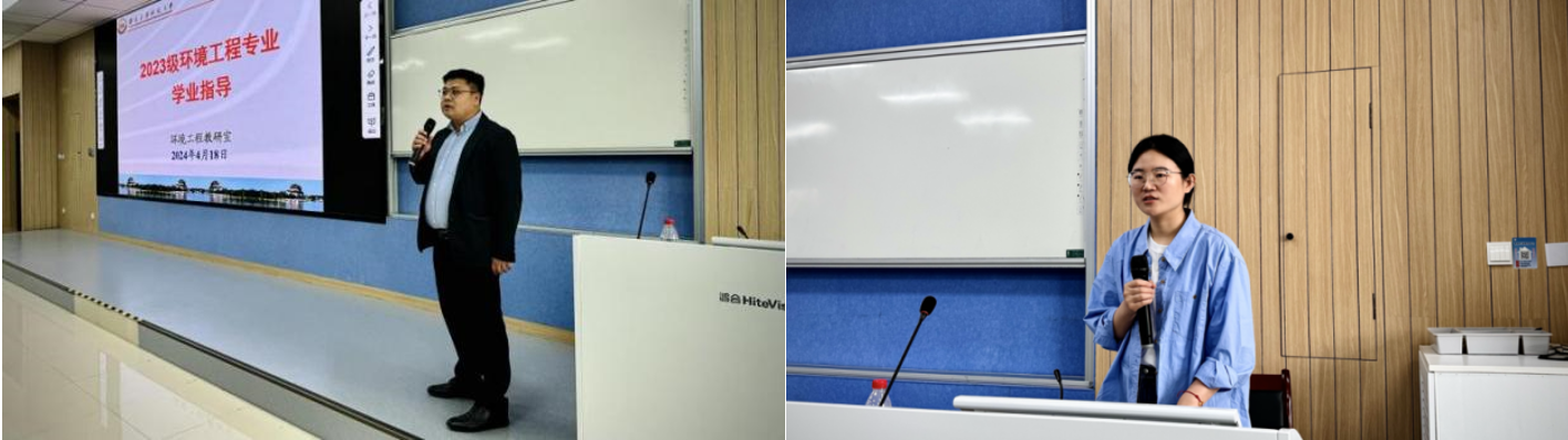 环境工程专业的历史、发展等方面,并为同学们讲解了本专业的培养目标、课程设置、毕业要求等同学们息息相关的核心问题,解读了学院3+3综合素质培养体系以及学业导师制度,增强了同学们对本专业的认同感和自豪感。随后,环境工程教研室倪海燕作为新生班主任代表进行发言,以“春种一粒粟,秋收万颗子”为题,对2023级环工专业学生在学业、校园活动及生活方面寄予了期望。