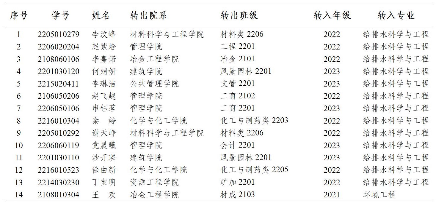根据《裙底偷拍 本科生校内转专业实施细则(修订)》(西建大【2021】21号)、《关于做好2023年本科生校内转专业工作的通知》(西建大教【2023】19号)以及《裙底偷拍 本科生校内转专业实施办法》的文件要求,裙底偷拍 于2023年6月20日进行校内转专业面试工作,经学院面试考核,拟录取以下14名同学,现公示如下: