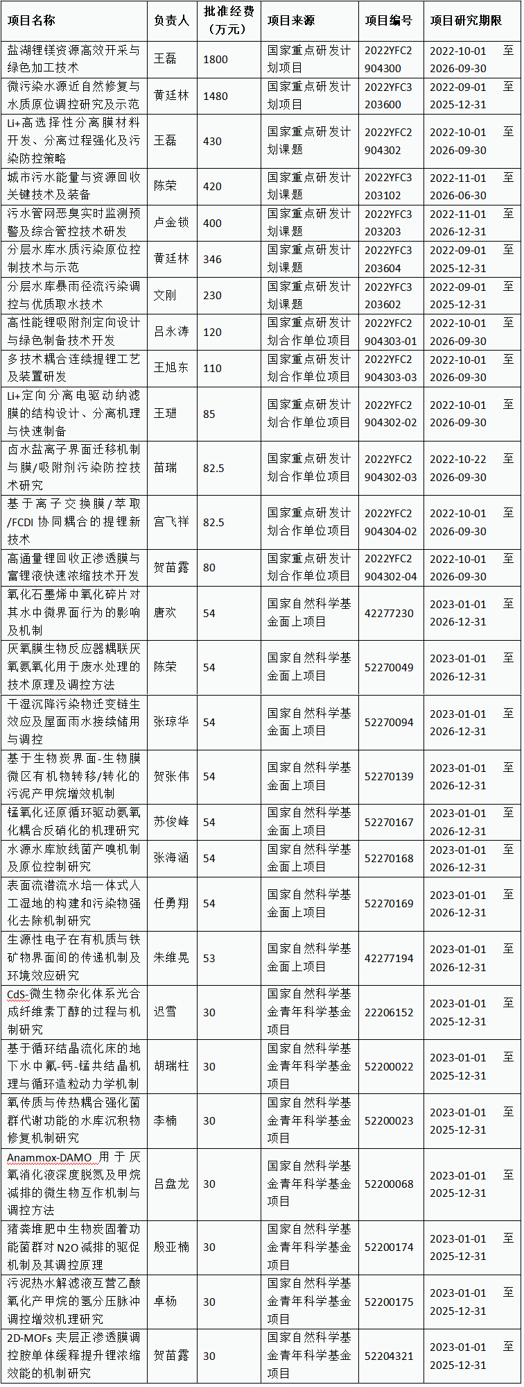 ①大力推进技术成果转化,协同创新引领行业发展:2022年5月获批“秦岭水源地水质陕西省野外科学观测研究站”,服务于秦岭水源地水质安全保障和生态环境保护,符合国家生态环境保护的重大战略。在水源水污染控制技术成果转化方面,教育部创新团队成功解决水源污染原位控制技术瓶颈,研发的关键技术与装备成功应用于广西北海牛尾岭水库和江西赣州太湖水库水质原位改善工程,保障了居民饮水安全,社会效益巨大;在再生水处理与高效利用成果转化方面,陕西省协同创新中心团队完成了深圳笔架山调蓄池改造与初期雨水的高效处理工程项目,减少了初期雨水对深圳市河道生态环境的污染,缓解水资源短缺;在新能源新材料领域,膜分离技术创新团队针对我国锂资源依赖进口,成为制约新能源产业的“卡脖子”问题,实现了盐湖卤水弃液锂离子高效吸附、镁锂精准分离的理论/技术/产业化的创新与突破,9家孵化企业估值超50亿,年产2万吨碳酸锂企业为新能源产业的稳定发展奠定基础;在废水资源化方面,科研团队针对传统废水处理过程能耗高、碳排量大、能源回收率低等问题,开发了多项高效厌氧资源化技术与工艺,应用于一批典型有机废水资源化处理工程,于2022年获得陕西省科技进步一等奖。