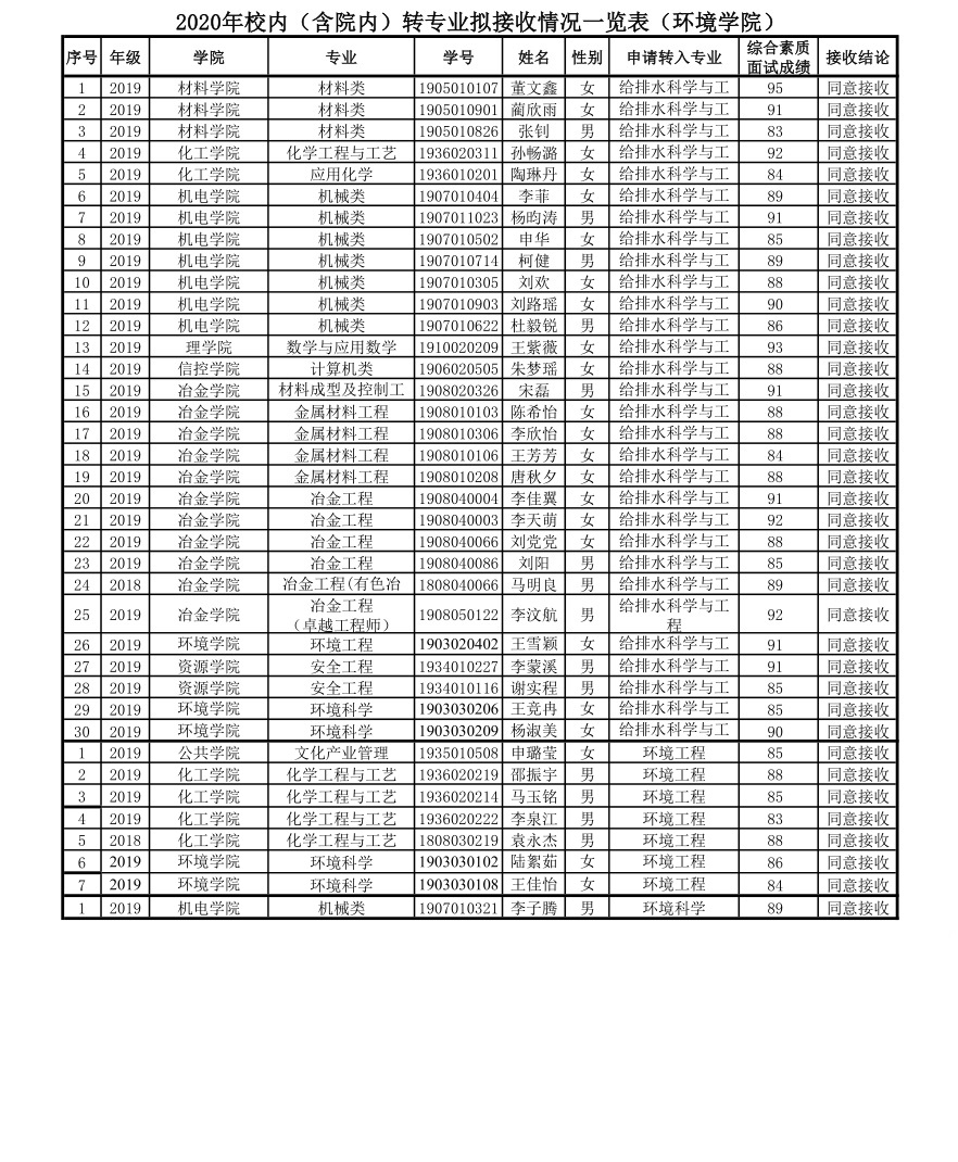【本科生】2020年校内(含院内)转专业拟接收情况一览表(裙底偷拍 )