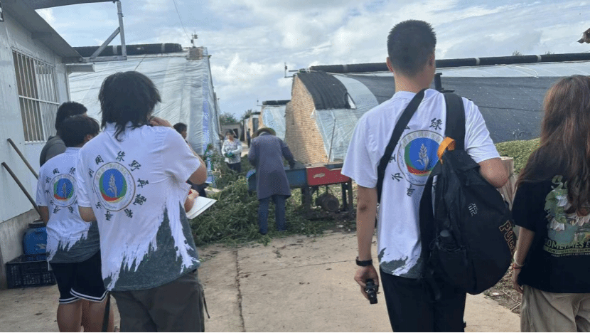 图 为团队成员在西北农林科技大学的学长带领下参观蔬菜尾菜的初步处理。高彤 摄