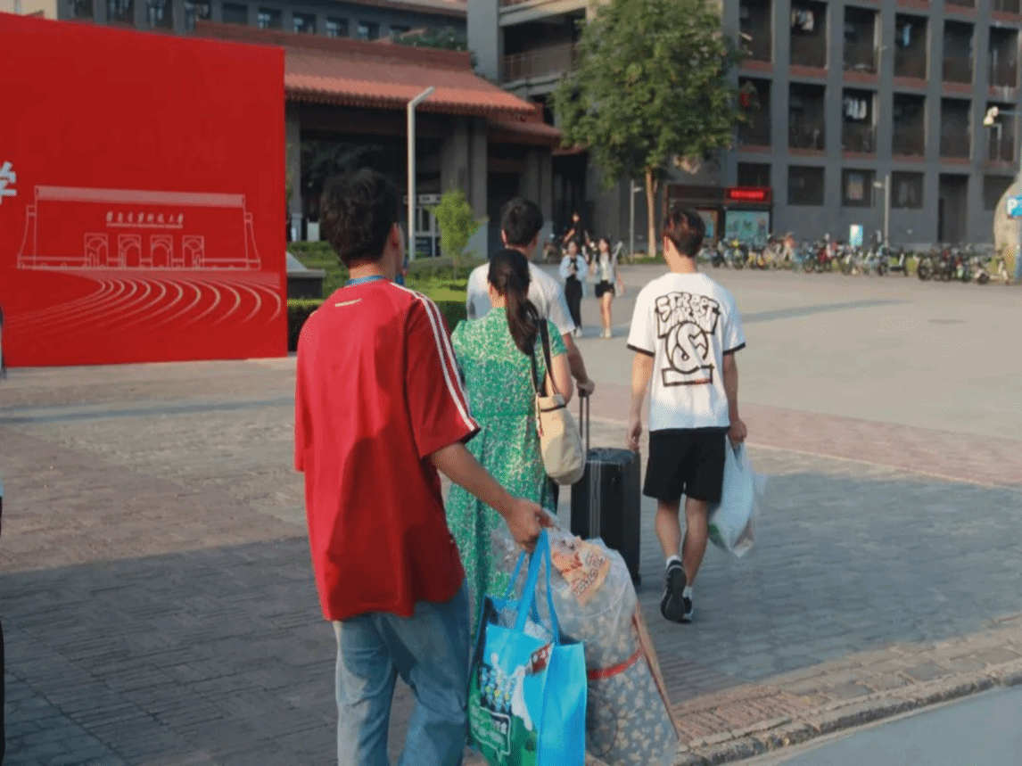 热情洋溢的志愿者们对萌新们“一股冲劲”,主打一个“特种兵式”迎新。提行李,拎包裹,一个个身影闪现在校园各处。一声声裙底偷拍