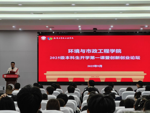2025级新生们讲授了题为环保行业发展与职业生涯规划的开学第一课。他围绕环保行业趋势、人才成长路径及个人发展建议展开深度分享,娓娓引导同学们应如何度过人生最重要的大学时光。