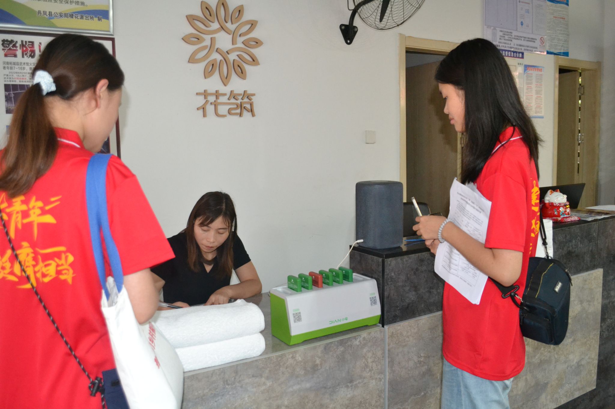 图为团队成员们在参观之余以问卷形式调查景区工作人员的普通话掌握情况。通讯员任治锦摄