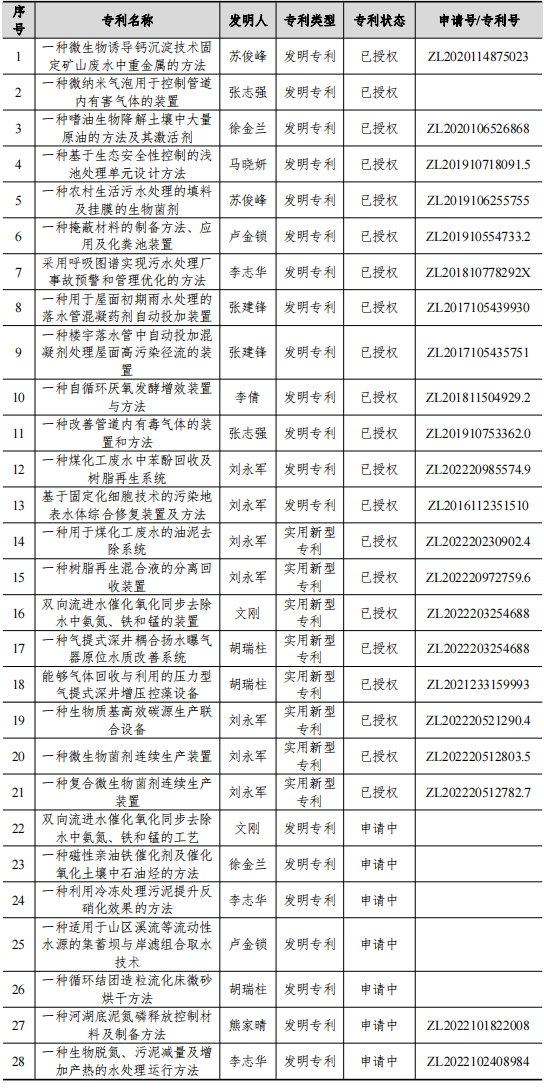 表8 2022年给排水教研室专利申请/授权列表
